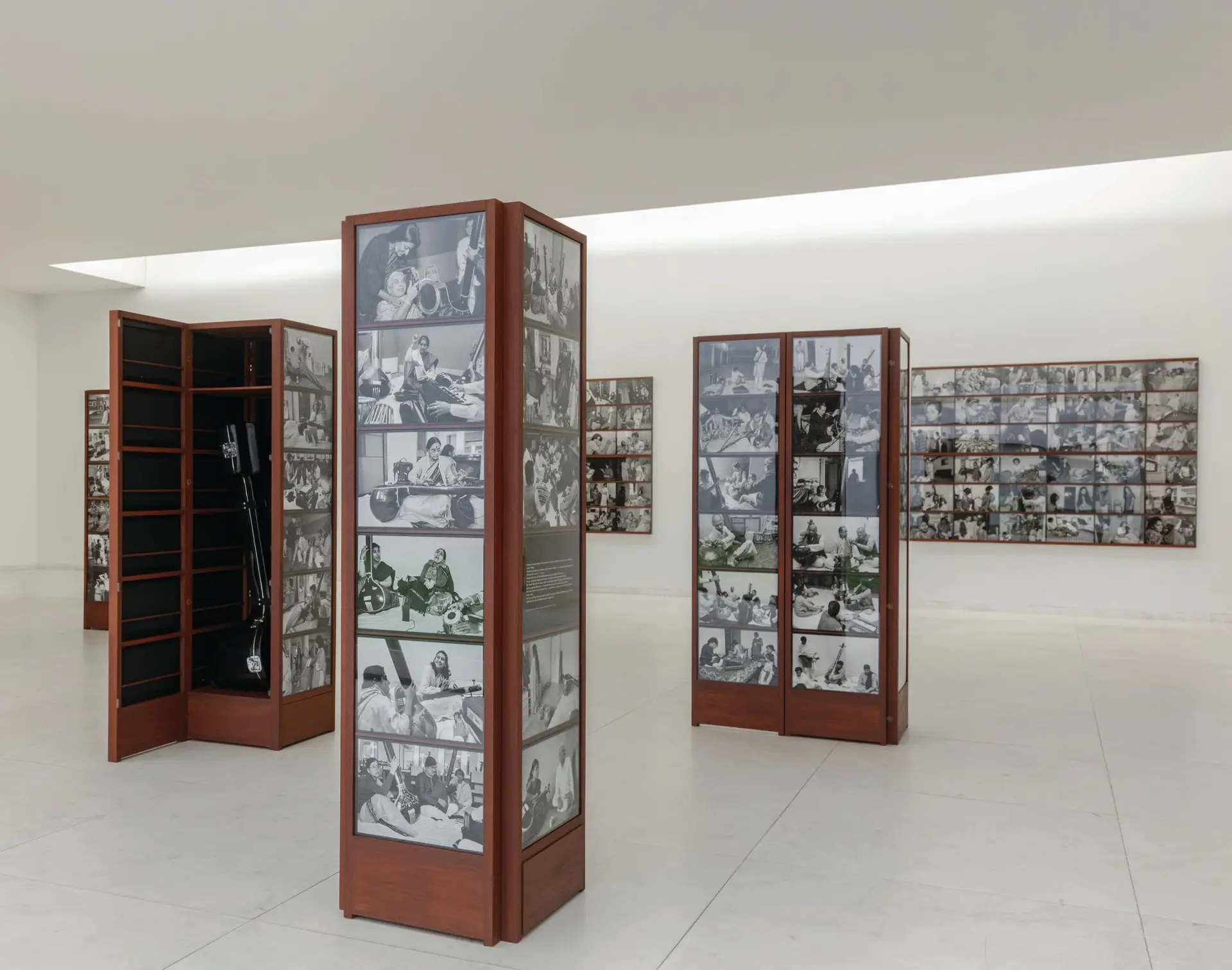 Dayanita Singh’s ‘Museum of Tanpura’ is a rumination on time, music, and the ephemeral nature of human connection. Singh, who dismantles traditional hierarchies of photographic display, invites us into a space where the photograph is no longer a static object but a living, breathing participant in the act of remembering. Her works confront us with the question: How do we hold onto moments that are, by nature, impermanent?